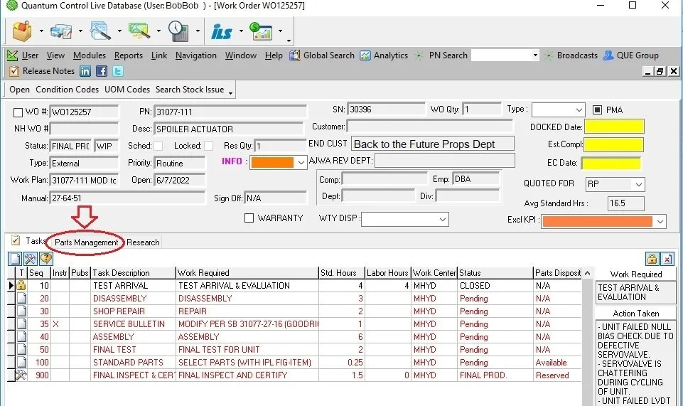 Parts Search (Inventory) and Bill of Materials needed for Work Order